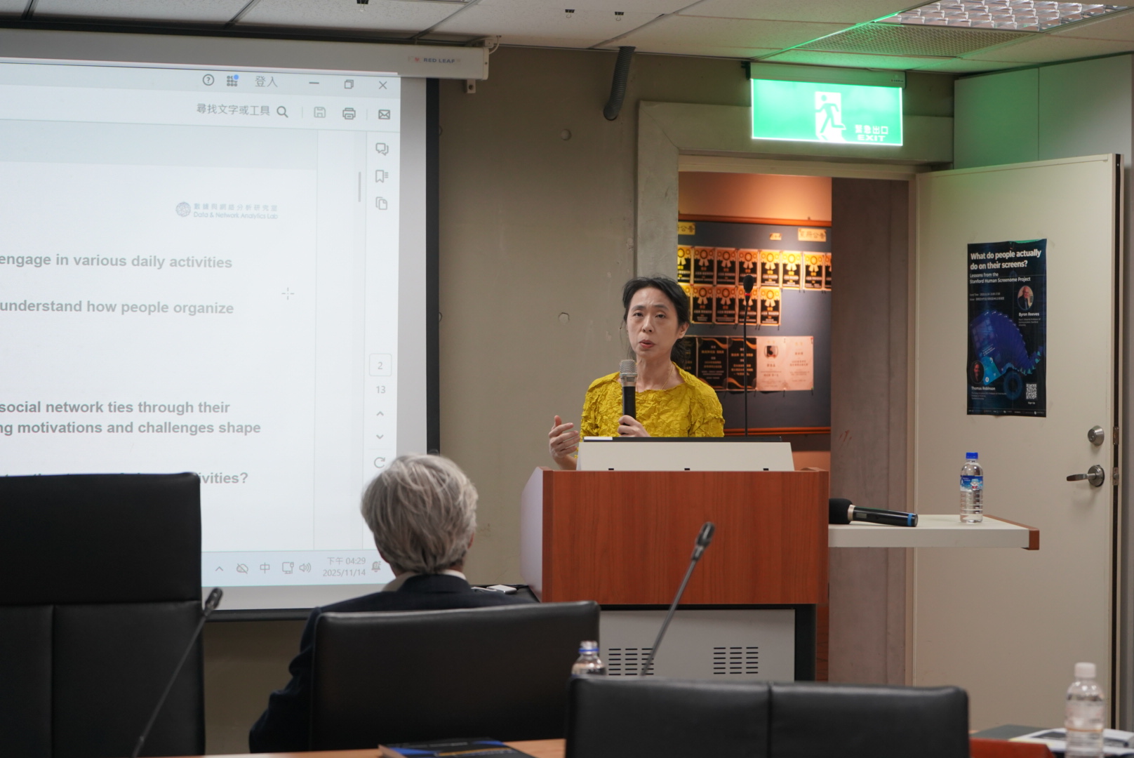 臺大生物產業傳播暨發展學系劉桂君教授亦分享心得。他表示,Screenomics 透過 Experience Sampling Method 更貼近使用者實際操作,不論在社群媒體或個人平台上都能如實呈現行為軌跡。此方法讓研究者得以看見過去難以捕捉的「前端行為」,例如資訊搜尋與處理的階段,進而理解使用者意見形成的全貌。他認為此方法對研究極具啟發性,也對自身研究帶來實質助益。